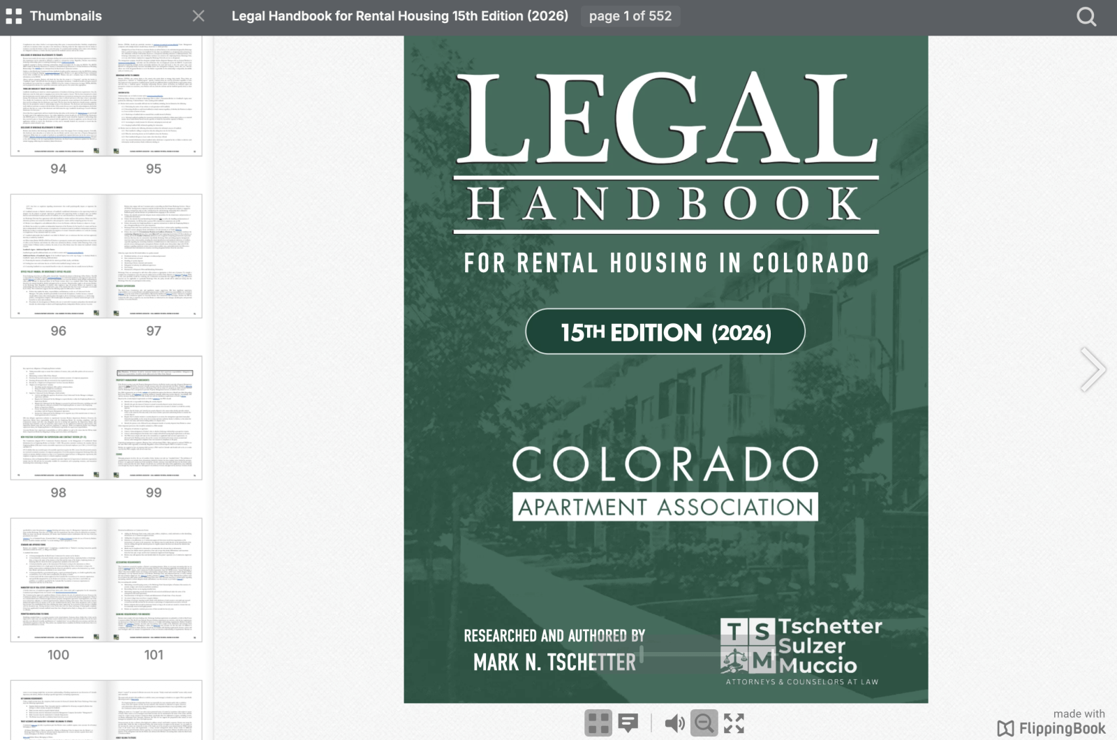The complete Legal Handbook publication is available digitally for all members of the Colorado Apartment Association.