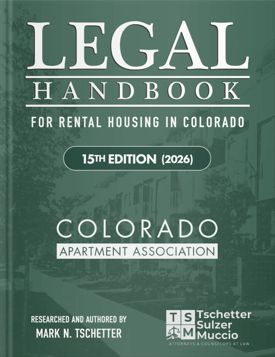 The Colorado Apartment Association and Tschetter Sulzer Muccio, P.C. have partnered to bring CAA Members this comprehensive Legal Handbook for Rental Housing in Colorado. This Handbook is designed to educate and guide CAA Members in running their businesses according to required legal guidelines.